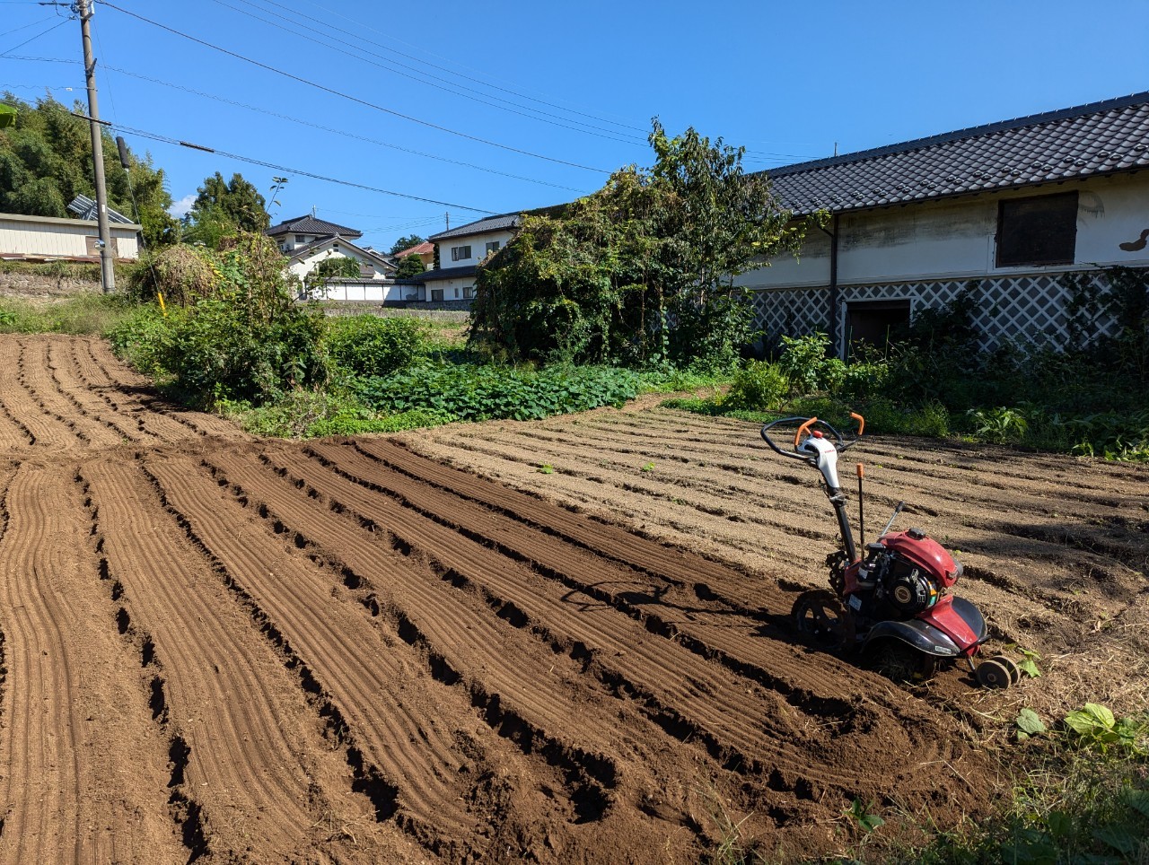 9月中旬やっと涼しくなり、秋冬作のケール、ほうれん草、コカブなどの種まきとじゃが芋の(リベンジ)定植をしました。