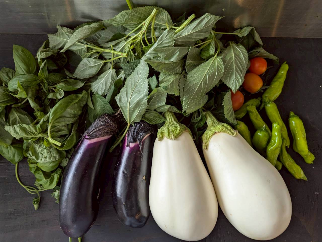 5月~6月なす、ピーマン、モロヘイヤなどを定植。有機肥料を使い、順調に生育して収穫。
