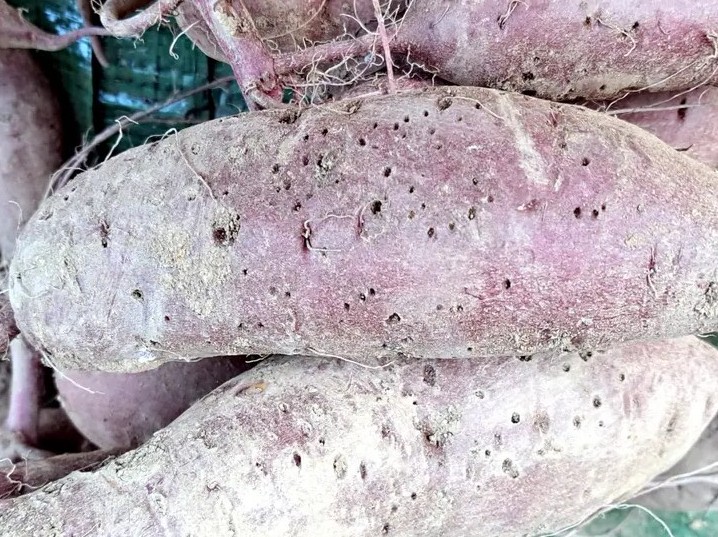 11月収穫、掘り出したさつまいもはどれも無数の虫穴だらけ(!)。