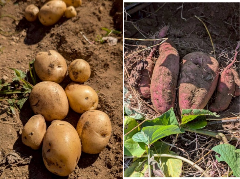 土壌改良が効いて、虫穴はかなり減少‼さらにピッカピカのじゃがいもも収穫、青物野菜もどんどん成長中。