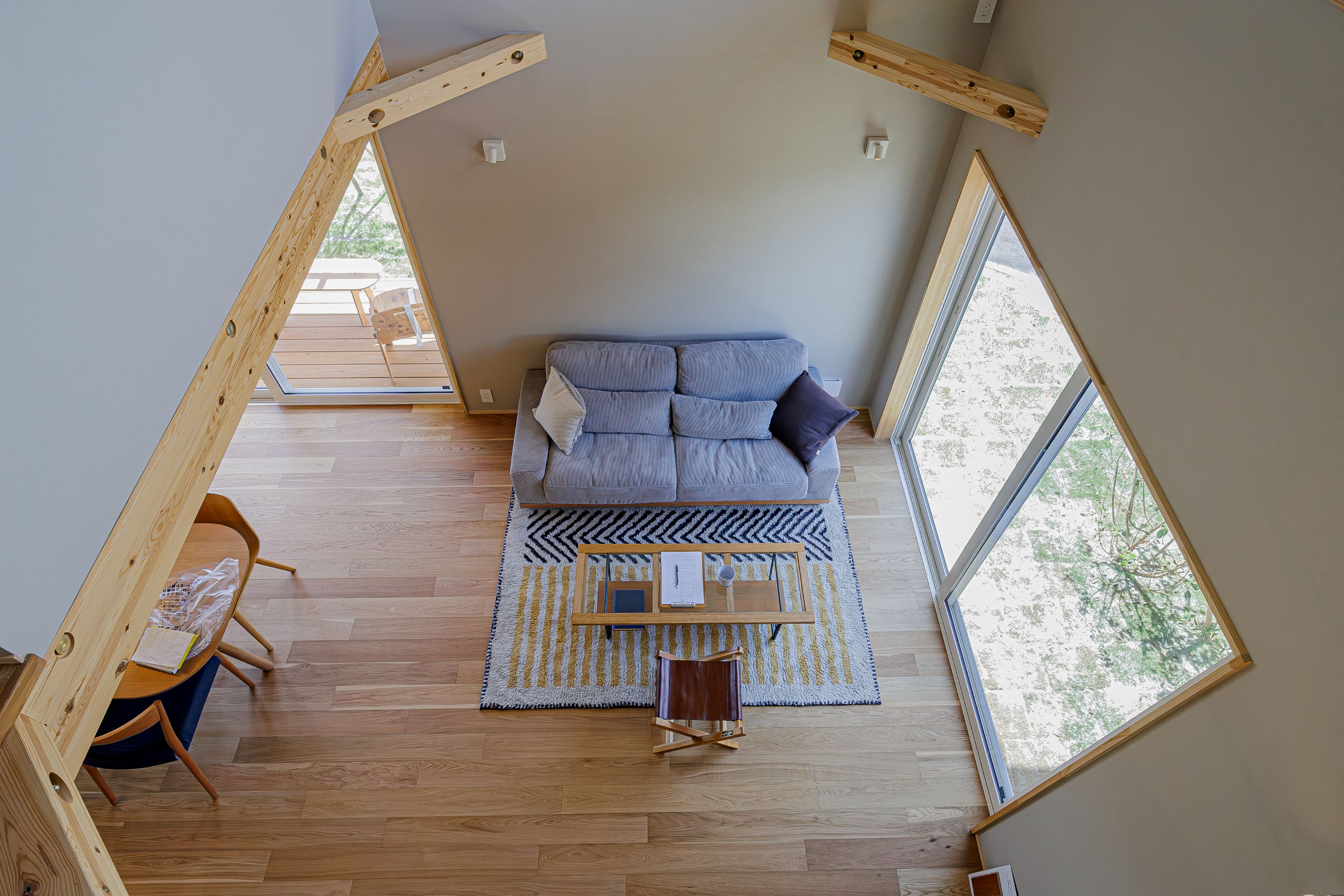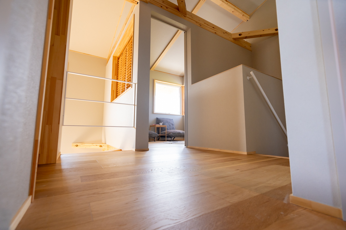 吹抜けの空間により家族が心地よく繋がることができることが魅力。