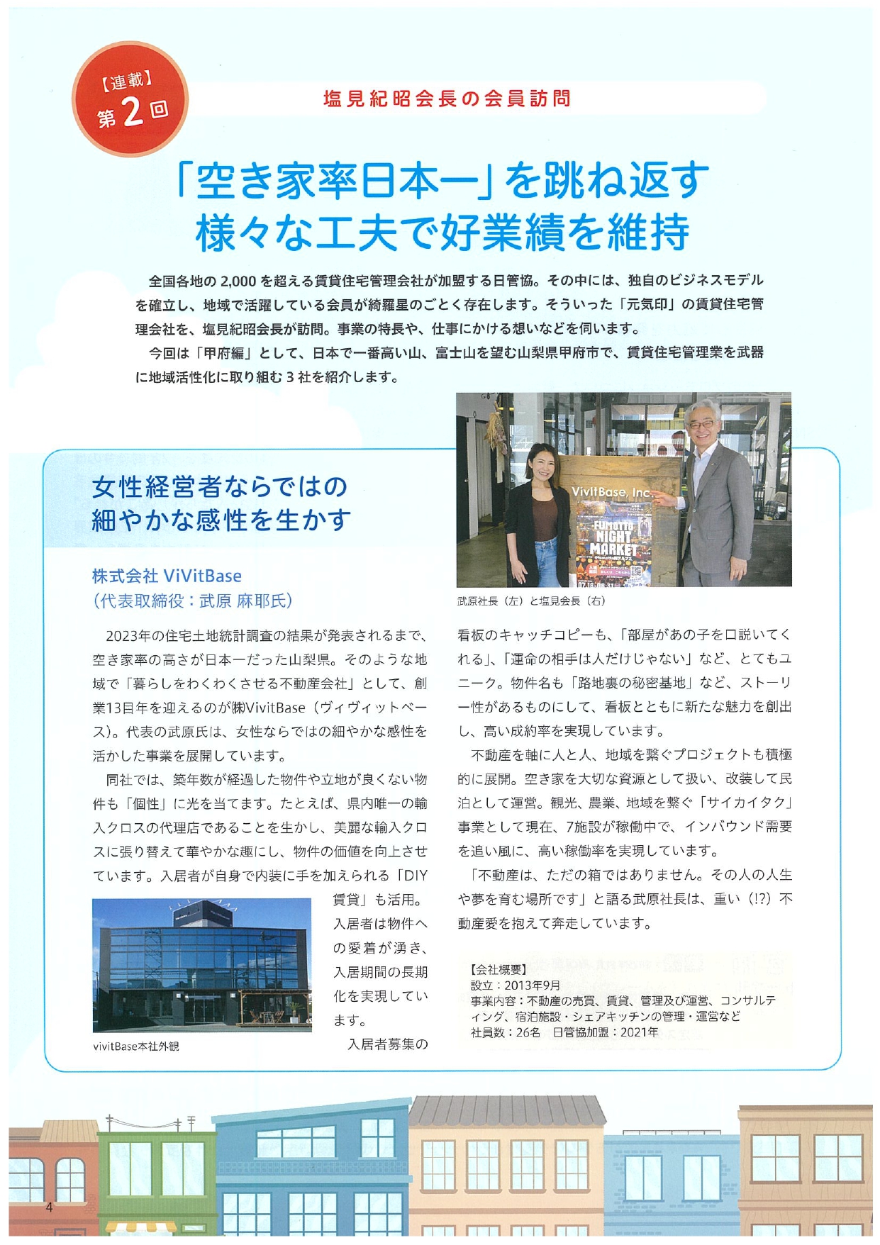 VivitBaseは山梨県の街の活性化のため宿泊事業にも力を入れております。