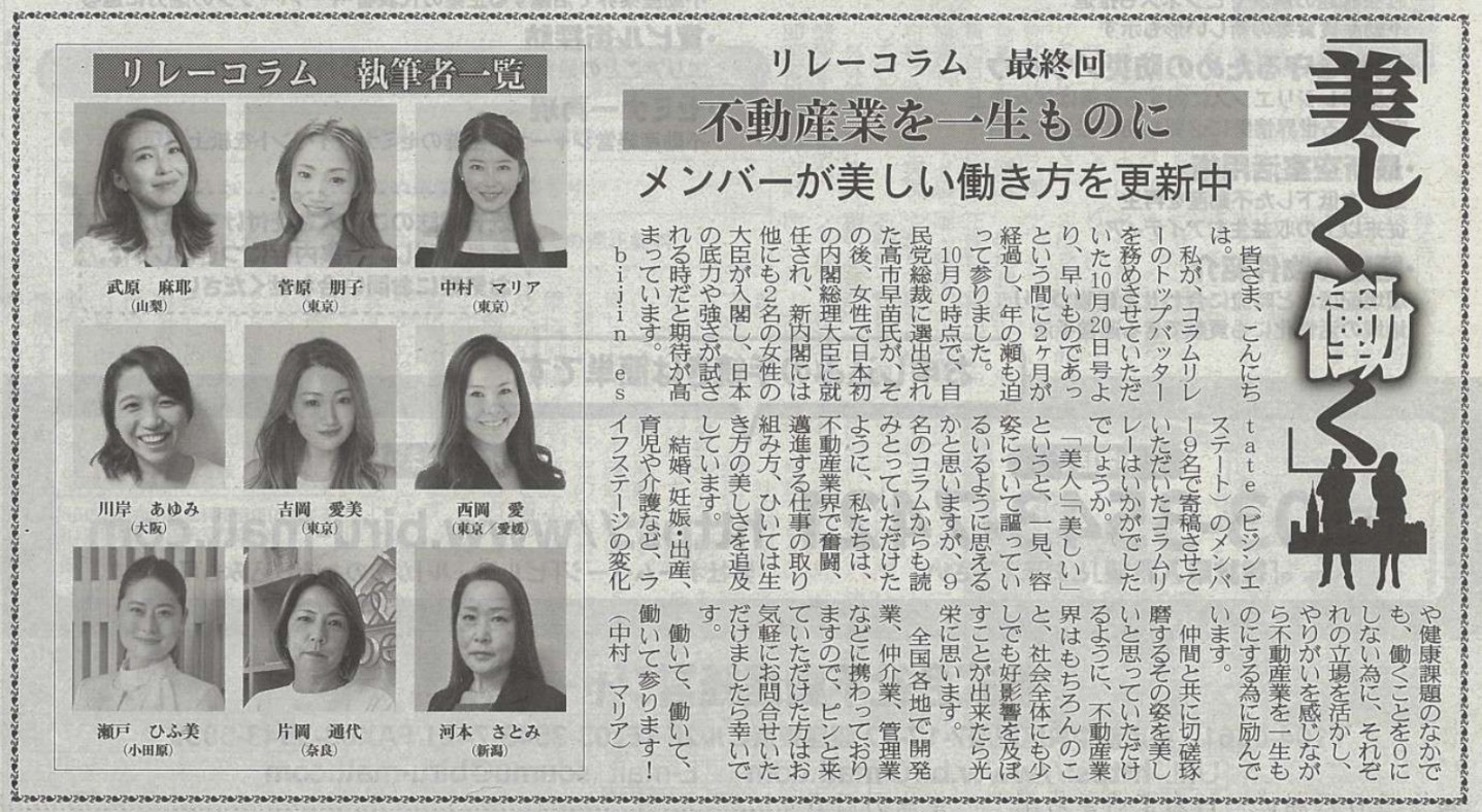 週刊不動産経営のリレーコラム「不動産業を一生ものに」。