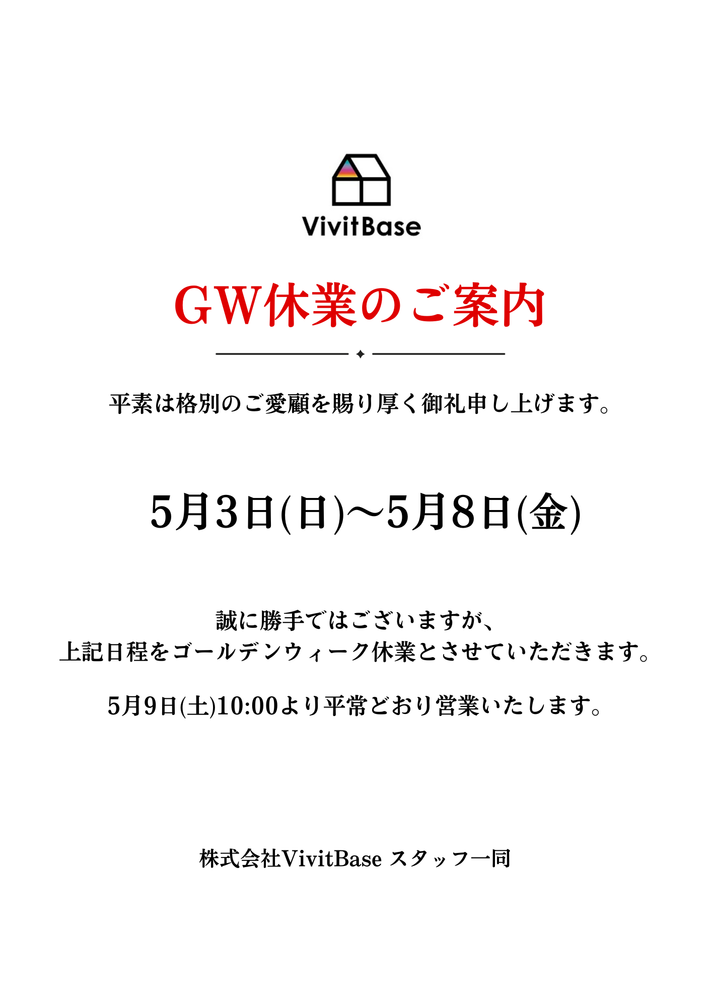 上記日程をゴールデンウィーク休業とさせていただきます。
